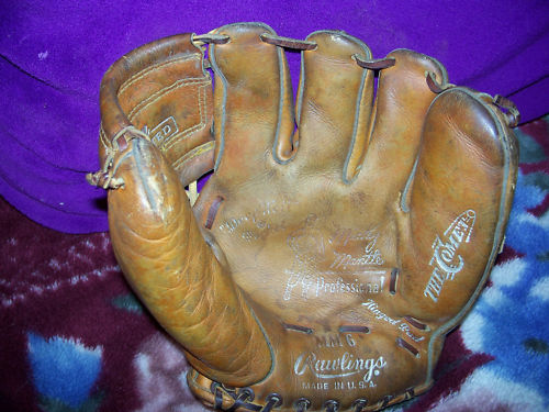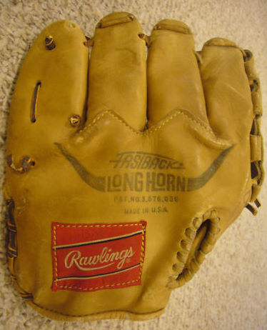 Beautiful and lightly used Rawlings circa 1970 "Brooks Robinson" model XFCB30. Sold for $75 on ebay. A refreshing change of pace from the commonplace XFCB17 with flex-o-matic palm. This glove has the classic "lazy s" lacing in the pocket, split web, "edge-u-cated heel" lacing and the "Longhorn" stitching variation to the "Wingtip" back design.