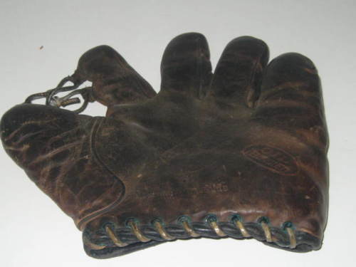 Early J.C. Higgins full web glove sold for $200 on ebay. Nice cloth patch on the back, some wear to the inside but a good quality glove that displays well.