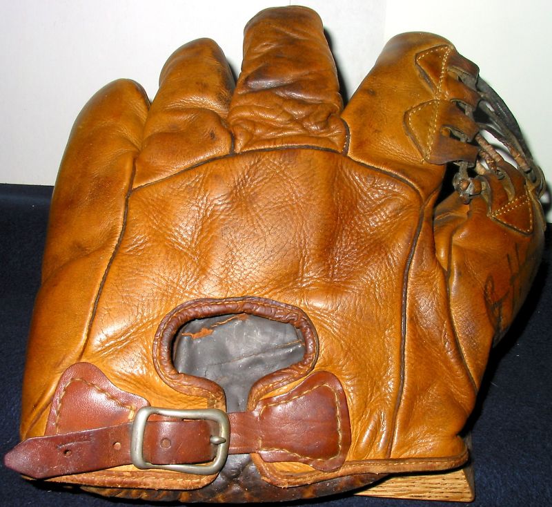 Ebay seller, bubbared had some interesting finds lately. here are a couple. first is a nice "Marty Callaghan" model buckleback glove that sold for $78 on ebay. I owned this model years ago and loved the intricate webbing and back panel.