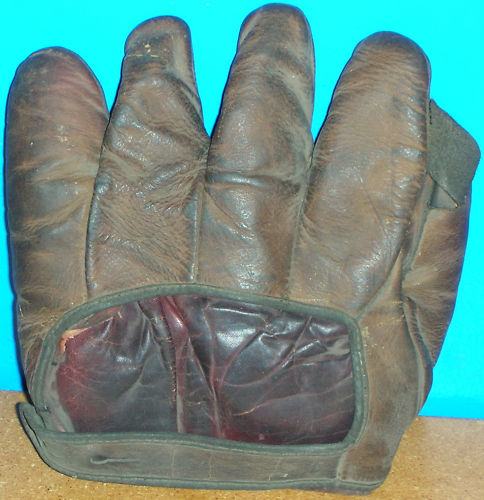 circa 1905 crescent pad catchers mitt in well used condition on ebay. Looks like it originally had a hook and eyelet back. Pretty funky repair/addition of a wrist strap, but for $50 it's a bargain.