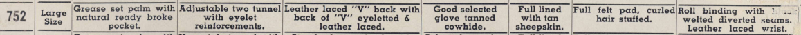When I bookmarked the 752 glove I thought it was an interesting model. Nice to see the literature along with it. I'm wondering what is stamped in white across the wrist strap in the ad.