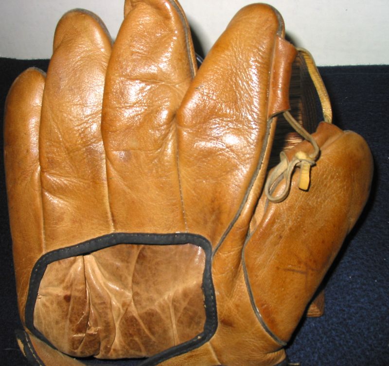 A 1950's Rawlings "Herb Score" model HSP glove sold for $81 on ebay. This is a popular collector model, has deep stampings on the front, V-Anchored web on the back