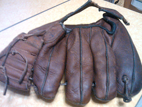 First is the 1940's Hutch "Ken Odea" model catchers mitt. deep stampings in the pocket. Nice patina to the leather. Close to top of the line qulaity. $25