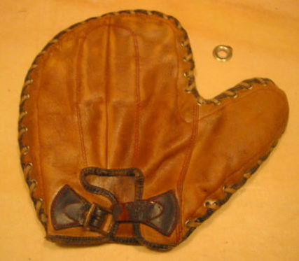 circa 1905 crescent pad catchers mitt sold for $80 on ebay. Has some wear and minor damage but still all intact and a pretty nice collectible mitt.