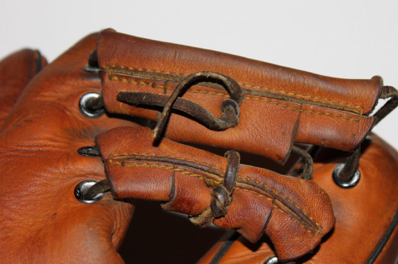 A nice 1950's Spalding "Sal Maglie" model 1061 sold for $25 on ebay. Top of the line in its day. Pre-formed pocket lacing. Diagonal lacing on the thumb is part of the V-Anchored web, a sure sign of a quality made glove.