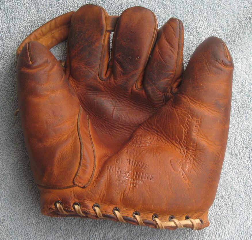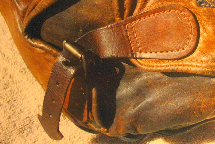 The glove above is not only missing the buckle but it looks as if the remaining strap is a tad short. The William Read glove below shows how the missing strap and buckle might have looked on the ebay glove above. If I'm not mistaken, the metal buckle has a unique little sleeve or roller as part of its quick adjustment/release feature. It was based on a Stall & Dean design.mikesglove wrote:Circa 1910 William Read & Sons full web glove sold for $880 on ebay. Pristine white buckskin with a great cloth patch on this super rare glove. The buckle strap is missing unfortunately