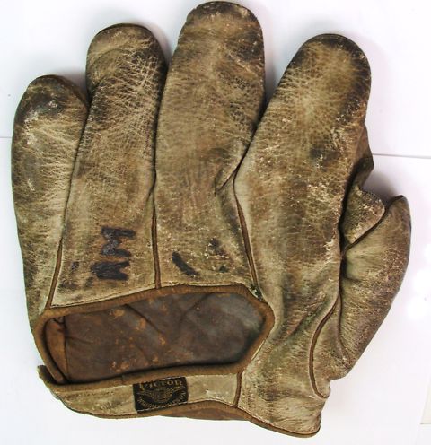 A lot of two vintage gloves sold for $153 on ebay. The smaller glove is a "Walter Johnson" model J12. It is a Goldsmith glove and features a die cut web. It is part of a "Famous Player" series Goldsmith manufactured. I have also seen a "Christy Mathewson" model