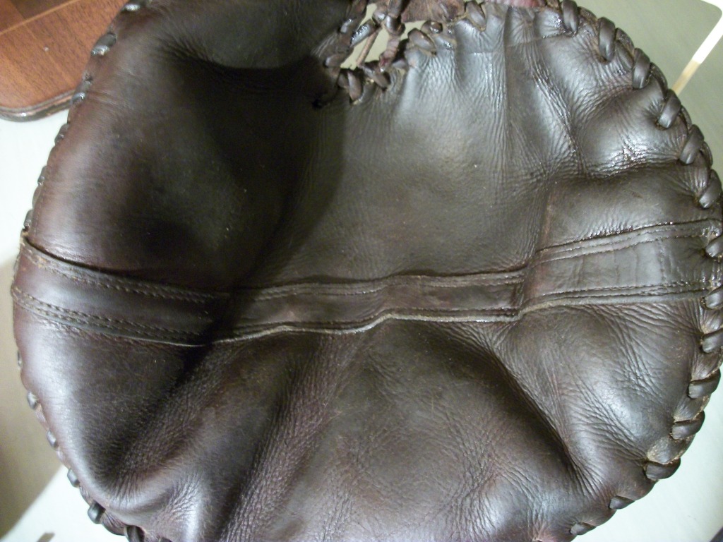 Thank you for the replies and the info. It seems most like a first base glove, a variation of the oven mitt glove. The lacing on it and the leather are high quality. I have not played catch with it. The seam that runs across the pocket seems to be a built in feature, rather than a repair job. Also, the flat leather lace that makes up the web, is unusual. I can take some better pictures. I really do appreciate your input. It is a unique glove. Fun to find models and styles that are different. thanks again.
