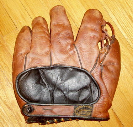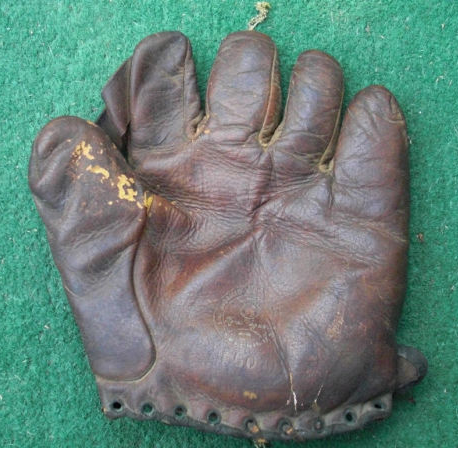 Some pretty good gloves. A nice 1920's Reach model OOW with patented strap web joining thumb and first two fingers sold for $89 on ebay. Intricate web lacing and grommets in good shape. Leather piping and lining intact. Super cloth patch