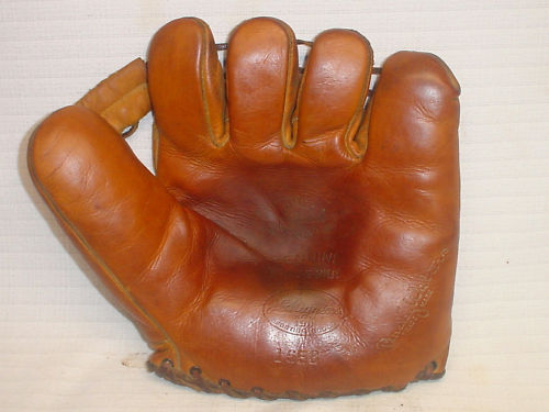 A 1930-1940's J.C.Higgins "Bucky Walters" model sold for $188 on ebay. The early double laced gloves are still popular and this one also has a nice buckle back. Stampings in the pocket are strong.