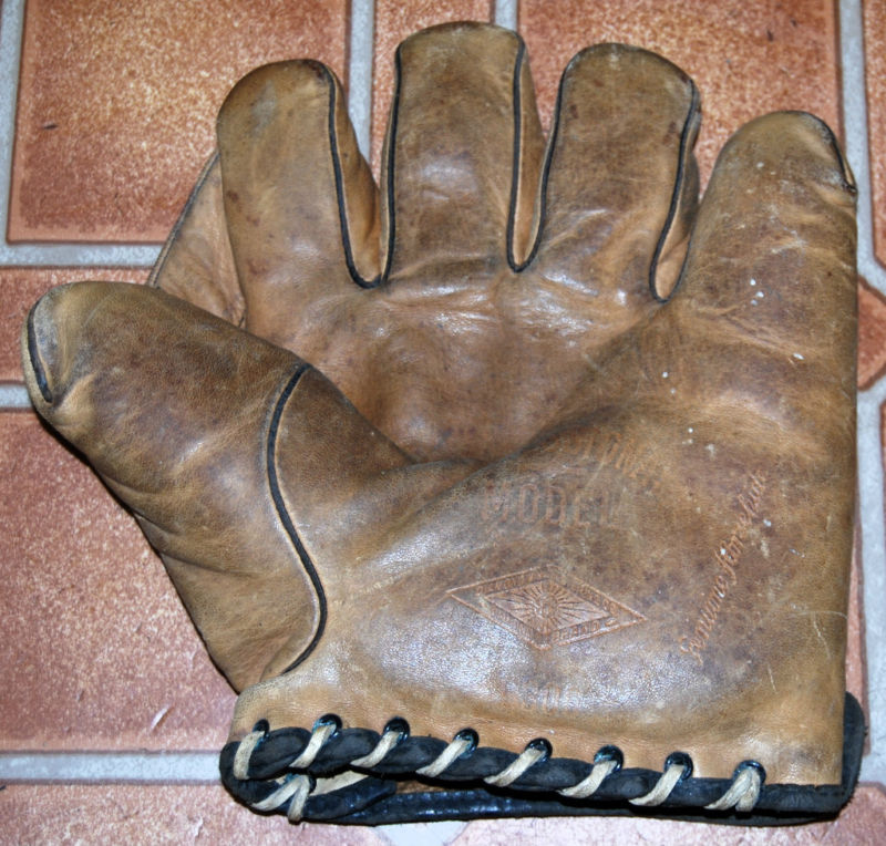 As a counterpoint to the TG15 glove above, This 1930's "Heinie Manusch" glove sold for $43 on ebay. The seller did not state the brand but It may be a Dubow. I have owned an identical Dubow with a different endorser and it was one of the nicest and softest calfskin gloves I owned. This glove is well made with leather binding and features a nice buckle back.