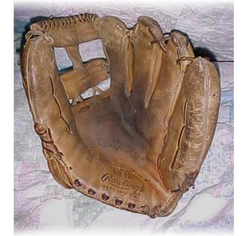 Circa 1960 Rawlings "Ken Boyer" model TG15 sold for $270 on ebay. This glove from seller gs65 is just one of several nice gloves he is selling on ebay. The "Robin Roberts" above was another one. Although the TG15 has been rebuilt, the scarcity still brought a good price. The post 1960's era glove market is strong right now as evidenced by the ebay results in the various glove categories. Maybe the baby boomers are having an effect.
