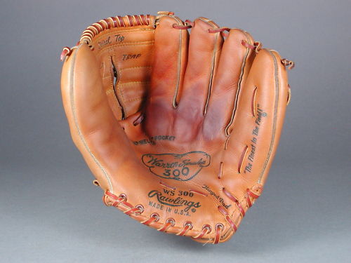 two near mint gloves sold on ebay. The first is a Rawlings "Warren Spahn" model WS300 with its original box. It sold for $283. Also include was a pitching pamphlet and the original sales invoice from 1965. Pretty cool.