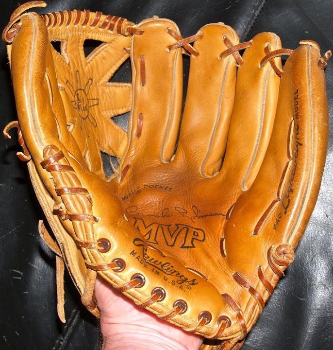 A 1965 Rawlings "Brooks Robinson" MVP model glove sold for $64 on ebay. The glove is in great condition. I like the "Big Wheel" web and the out seams on the back fingers seems to borrow the old Wilson design. Rawlings called it the "Magic Action Back"
