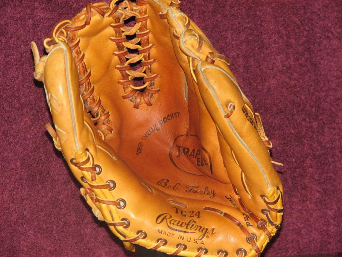 A really great looking 1960 Rawlings "Bob Turley" model TG24 sold on ebay for $220. Not top of the line but valuable because the glove is one of the early "Trapeze" models as evidenced by the "Patent Applied For" at the base of the web. Pretty cool.