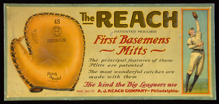 Early 1900's Reach tin advertising sign sold for $4750 at Hunt Auctions. The 6" X 13" Sign has pristine graphics.