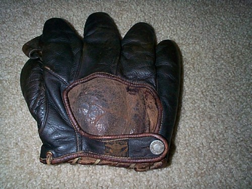 Circa 1905-15 Spalding full web glove sold for $129 on ebay. Originally a White glove, It shows some wear to the front but is intact and displays nicely on the back. Like the glove above, this one has a good patch, button and lining.