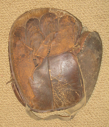 early 1900's Spalding fielders mitt sold for $75 on ebay. Overall in nice shape with some wear to the cloth patch. Great vintage look on the back with the finger stall divisions and the grommet web