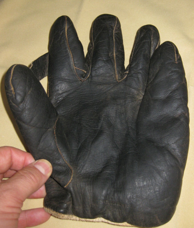 Great job in finding and describing these old gloves. I enjoy your commentary on them. By the way I was the one who ended up buying the cool tri-color (black glove, brown thumb and cream piping and web and liner) old time full sewn web Reach glove with the funky spider/diamond cut web a few weeks ago. It may be a period alteration by someone but I have not ruled out it being a die-cut stamped out web either. Either way, it sits on the top shelf of the glove loft with some other cool funky webs. :lol: