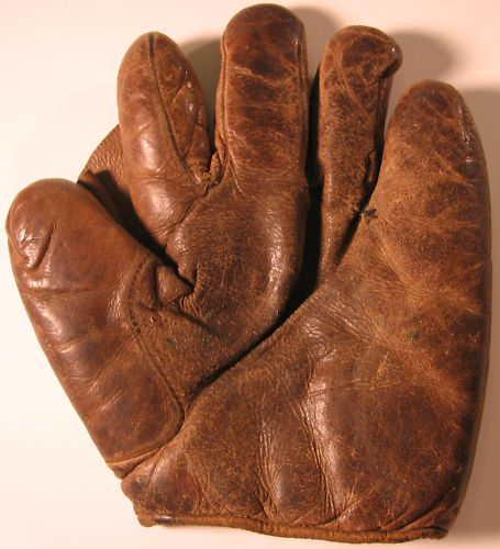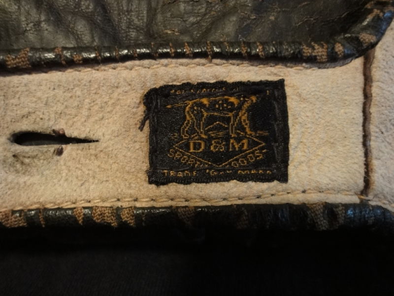 Great job in finding and describing these old gloves. I enjoy your commentary on them. By the way I was the one who ended up buying the cool tri-color (black glove, brown thumb and cream piping and web and liner) old time full sewn web Reach glove with the funky spider/diamond cut web a few weeks ago. It may be a period alteration by someone but I have not ruled out it being a die-cut stamped out web either. Either way, it sits on the top shelf of the glove loft with some other cool funky webs.