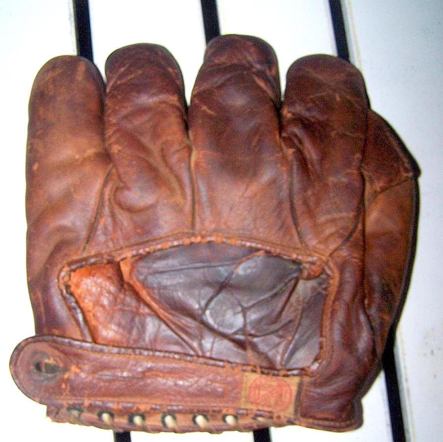 This old Reach glove may very well have been cut out by an individual and if so they did a very nice job on the cutting and if that be the case it sure looks to be a period alteration on the web. I would love to find an old catalog that talked about or showed pics of these old spider web gloves or any die-cut webs even the youth die-cut webs. If you run across a catalog pic sometime or patent, please share the pic with me, as I would love to see it.