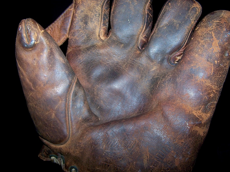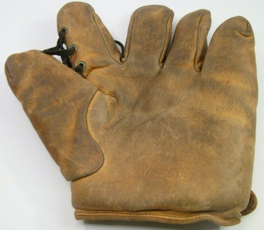 A circa 1922 Rawlings "Bill Doak" model glove sold for $227 on ebay. The glove saw some play but the leather is still supple and the two cloth patches are still fully intact. The original white inner lining is evident. Looks like it will clean up nicely