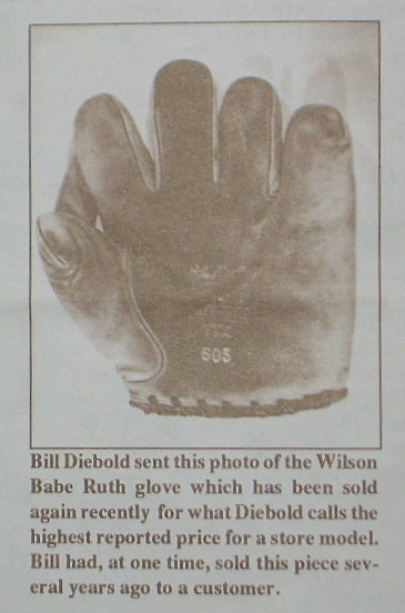 Here is a photo from the Sept. 1995 TGC. This is the sale I remember because the glove was so nice and the price was mid 4 figures and as the article states a high point for a store model glove. As I was looking through my old issues of TGC I was reminded again of the wealth of information there.