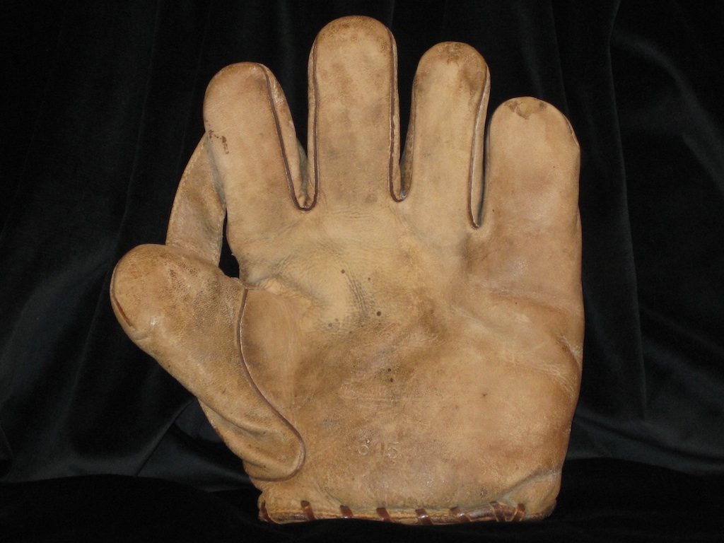 The thing that seems odd to me about the stamping in the Ruth glove is how little contrast there would be if the glove was the original color. It contrasts well now that the glove is gray but why have a stamping color almost identical to the glove color? Most white gloves I've seen with color added to the stampings were black or more of a gray-silver. Is it common for the stamping color to be so near white on a white glove?