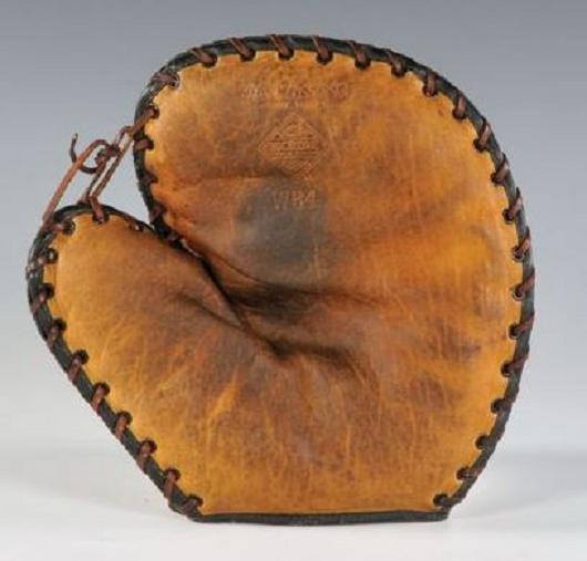 1930's Wilson "Rogers Hornsby" three finger glove sold for $310 on ebay. The glove has seen a fair amount of wear with some loose seams. The stamping is still strong in the pocket.