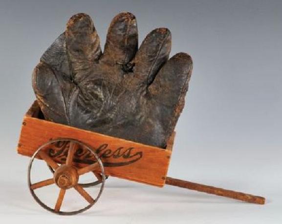 An 1890's crescent pad 'Workman's" style glove sold for $960 on ebay. The front displays nicely. The wrist strap is partially shredded on the back.