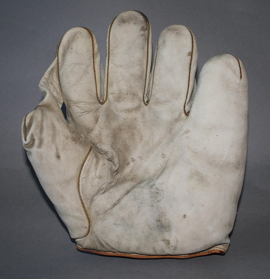 mikesglove wrote:A 1915-20's Horace Partridge 1" web glove sold for $456 on ebay. the glove itself is in pristine condition with nice markings in the pocket which are pretty rare with this type of white leather. The glove also features a variation of the Stall & Dean patented pocket. The circular stitching inside the wrist opening defines an area where the padding was reduced to more quickly form a pocket on the face of the glove. Also, a great cloth patch and only a minor flaw in the inner lining.