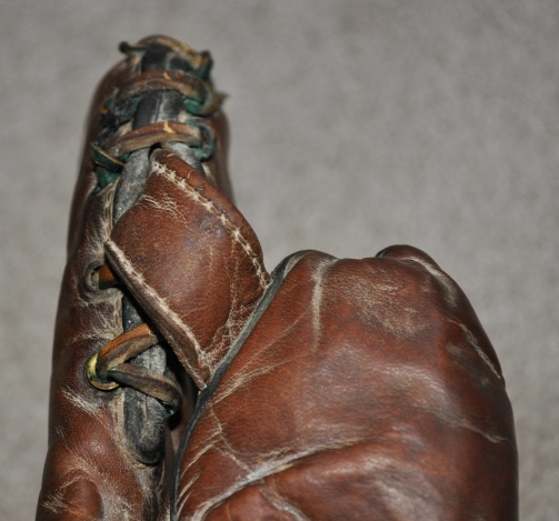 Cool glove.. Smooth lining. It was super dirty when I got it, so I put some lexol on it. Grommets loose all around. Nice patch. 9" tall. I broke the lace in one spot.. Asking $145 or b/o