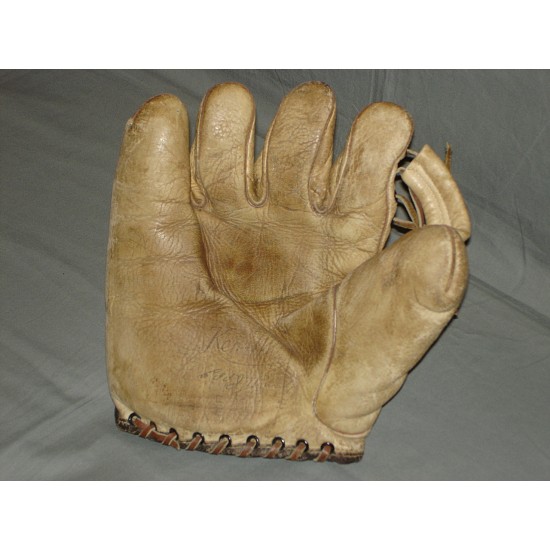 Falls right on the pre war cut one of my all time favorites. This glove has it all rare model, unique design and hall of fame endorsement the only minus is the ink on the wrist strap.