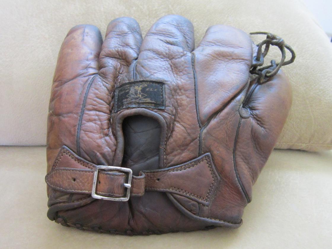Second is a 1930's Reach glove that sold for $197. It has "Home Run Special" stamped on the heel but no "Babe Ruth" endorsement. Some Canadian made gloves omitted the endorsement, possibly for legal or contract reasons. I owned a Canadian Spalding model MO that should have had the Ruth endorsement but it was also missing.