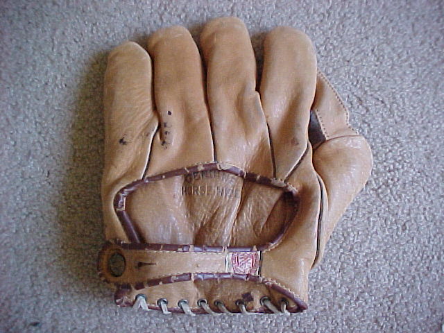 I just picked this adoult size Rawlings glove up for my collection and was hoping somebody could give me some info on it, I would like to know what year it was made and what does the initials MF mean under the Rawlings name. The initials appear to have been put on at the factory. The glove is just in incredible condition with just signs of very light wear. Also what would you think the value of this glove is. Any help would be appreciated.