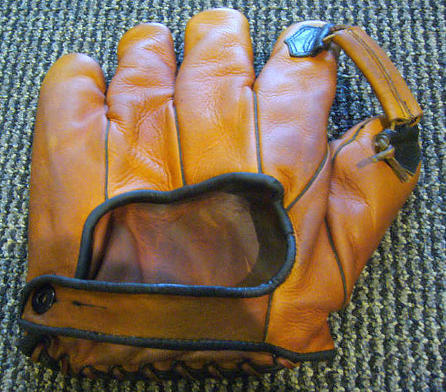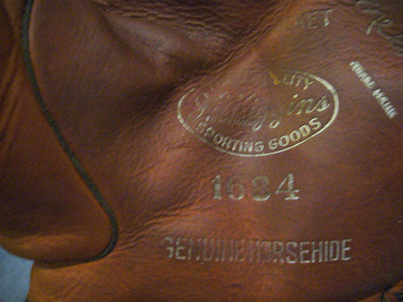 A 1940's near mint J. C. Higgins "Mel Ott" model 1684 sold for $300 on ebay. Strong markings and nice looking webbing and black accents against the golden leather.