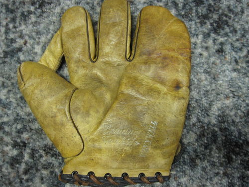 mikesglove wrote:A nice find on ebay. A black leather 1" web glove sold for $30. Looks to be a full size model with leather piping and in great shape with just a little cleaning needed. No manufacturer mentioned]
