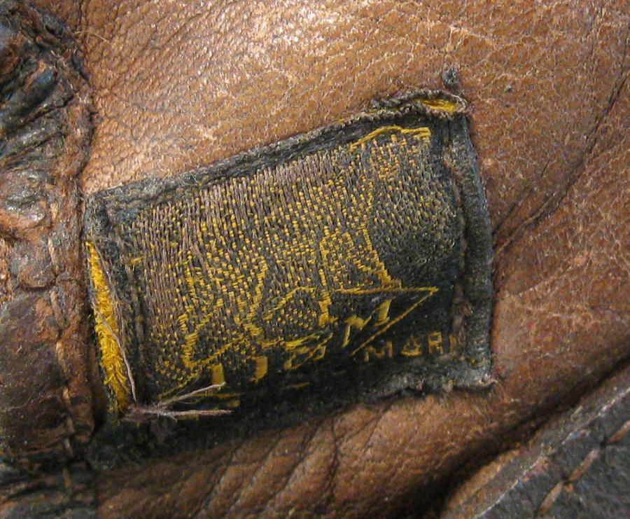 A 1930-40's KenWel "Harry Gumbert" model glove sold for $105. Triple tunnel web and a double button wrist strap. Strong stamped endorsement and intact cloth patch