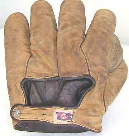This photo is from a calendar in the 1950's. The glove is a webbed finger model from the 1930-40's.