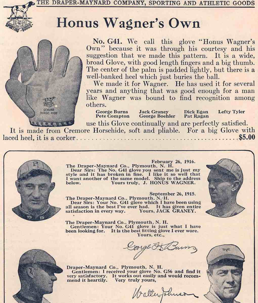 Similar to the Ratsch ad where Lajoie verbally endorses a glove without actually having his name on the product, Wagner did the same with D&M's G41 prior to Ruth.