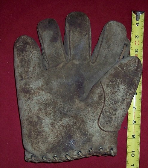 Third is a TOC mitt with an intricate buckle web and early patented heel lacing. Looks to be in great condition. It sold for $340 on ebay