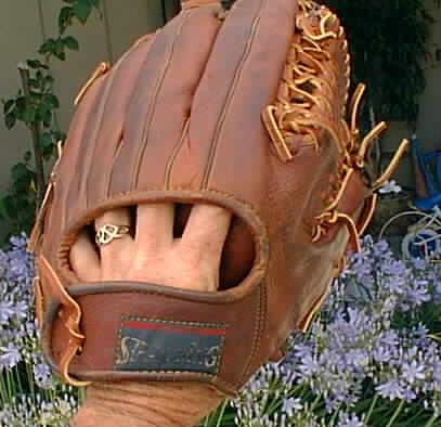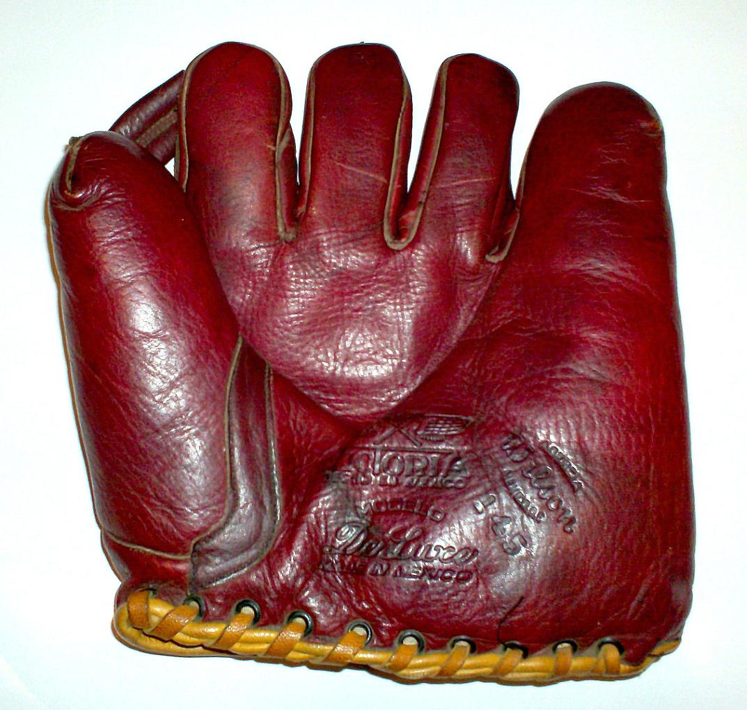 I've always liked the red wine leather on an old timer glove. This Wilson is in very nice shape and has that cool contrasting piping to boot. :D