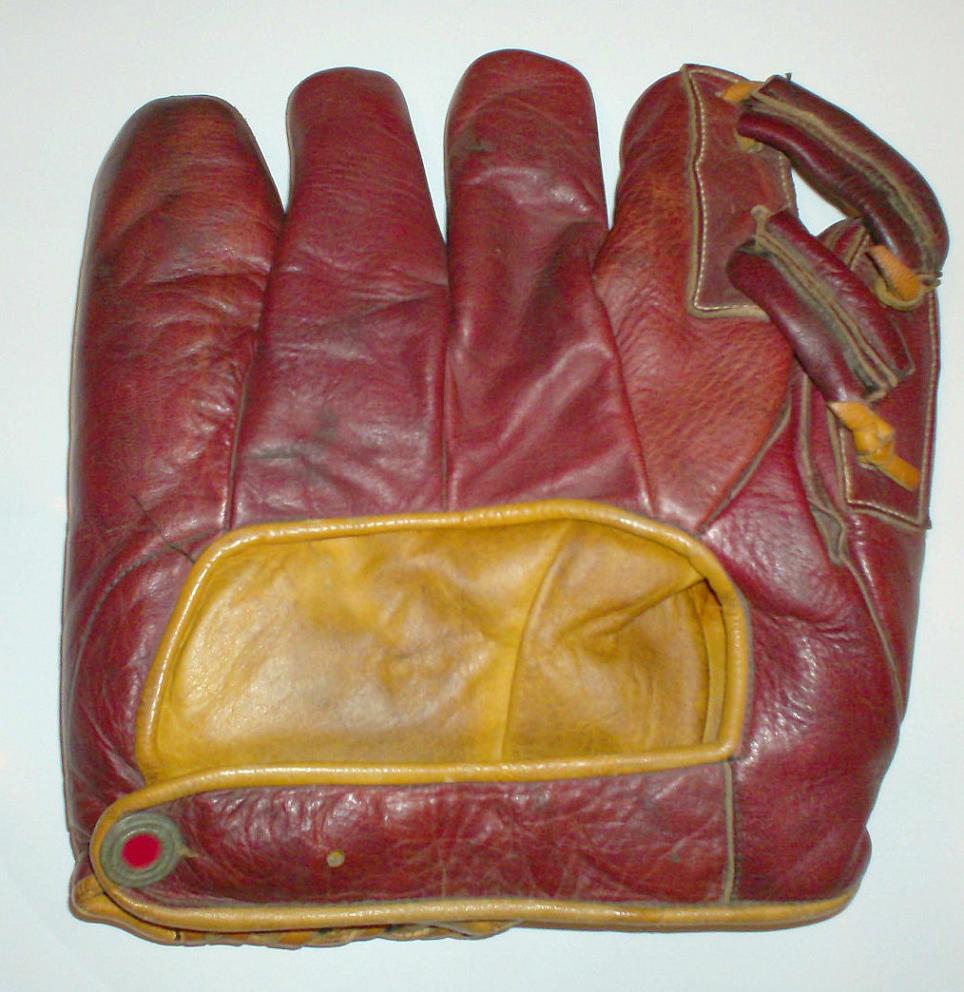 I've always liked the red wine leather on an old timer glove. This Wilson is in very nice shape and has that cool contrasting piping to boot. :D