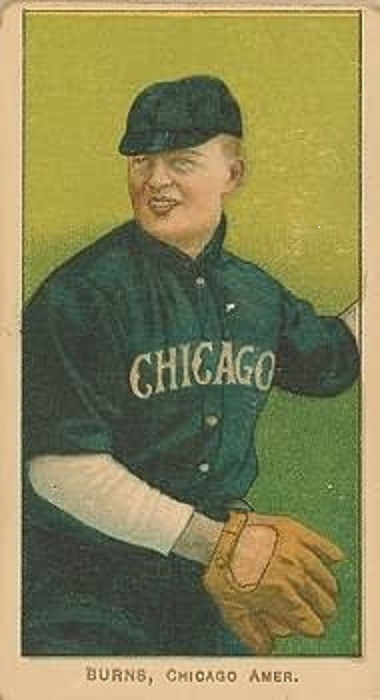 the baseball card is pretty goofy. The Hal Chase mitt you pointed out is a big one. When I see the riveted wrist strap I think Reach/Spalding.
