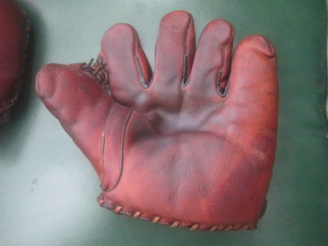 I have a couple of gloves to hopefully get trade talks going. I'm always buying killer sewn webs and crescents, Pre 20s football helmets and nose guards, and laced basketballs (pumped up or flat). Please email me at rickybulldog@aol.com for more info or pictures on the gloves.