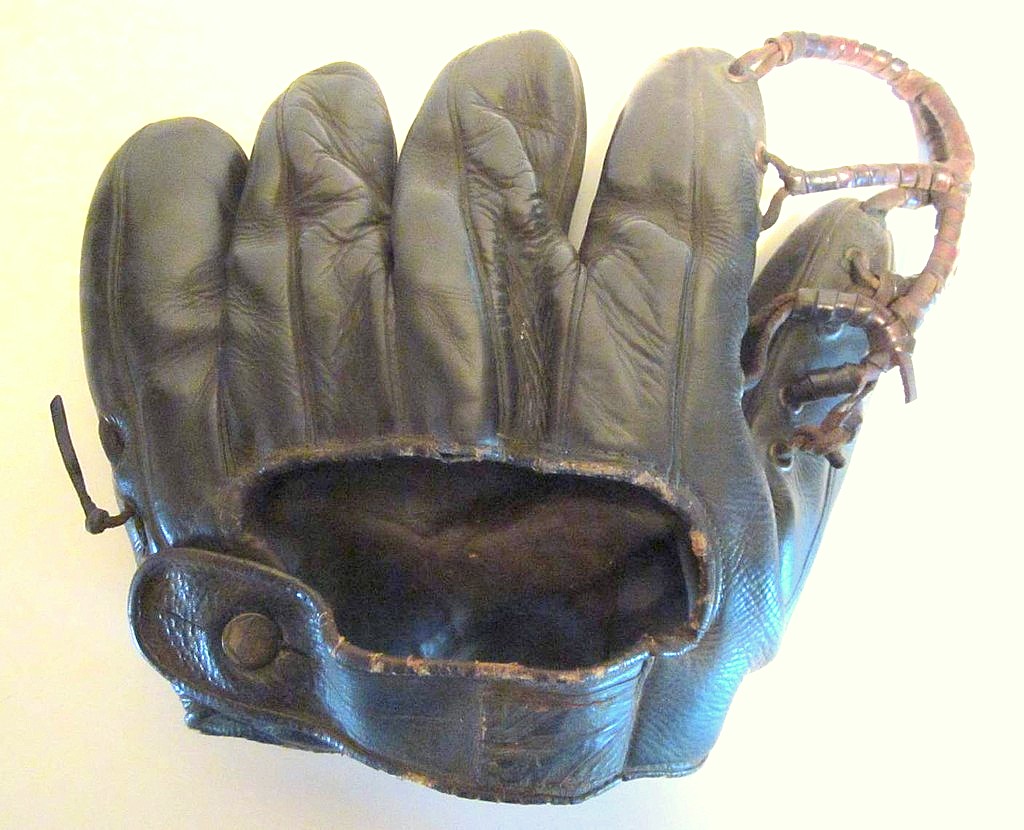 A 1930's Rawlings base mitt sold for $192 on ebay. Darkened pocket obscures a model number or endorsement but the back presents beautifully and the strap web models are always popular.