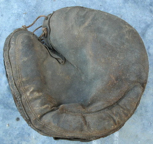 A circa 1900 crescent pad, hook & grommet wrist strap catchers mitt sold for a $25 BIN on ebay. This one is a big boy according to the listing.