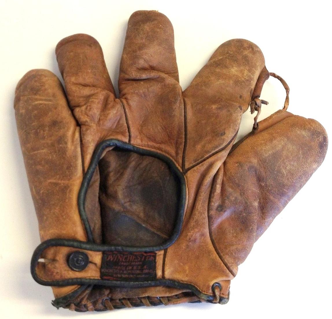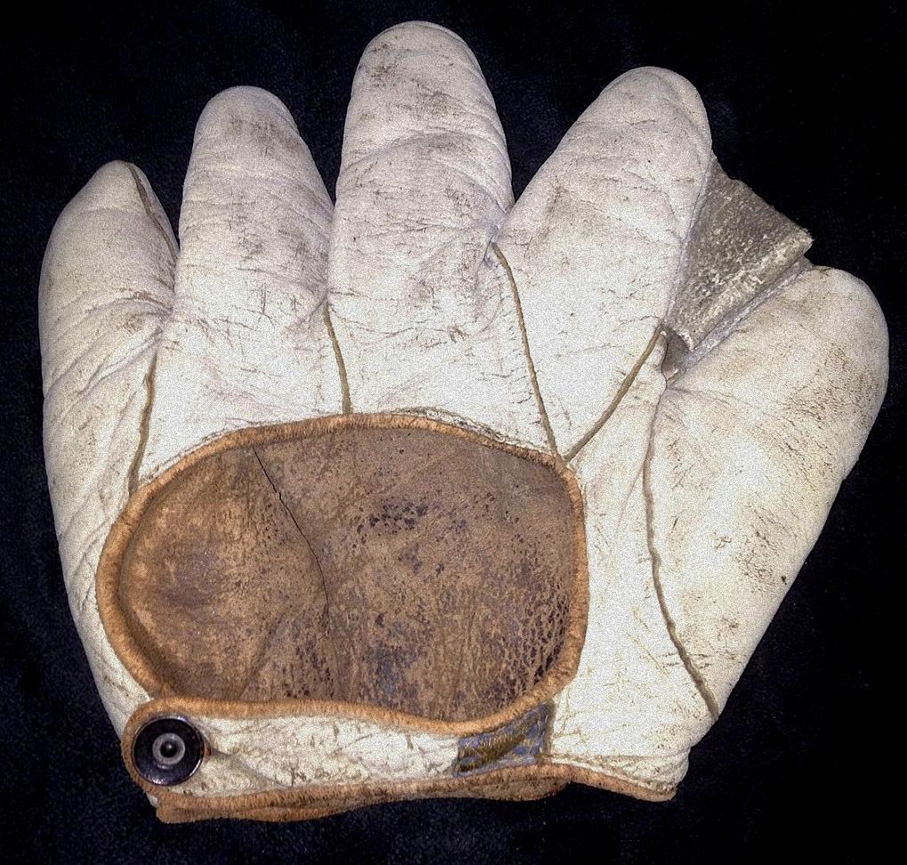 A 1920's Spalding sewn web glove sold for $261. Looks like it was originally white but now a soft grey color. Still in super condition.