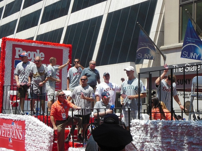 Truly one of the most amazing experiences of my life. This was the Red Carpet parade that included all the players and their families. I along with all the other AL team representatives were on a float in the midst of a sea of people.