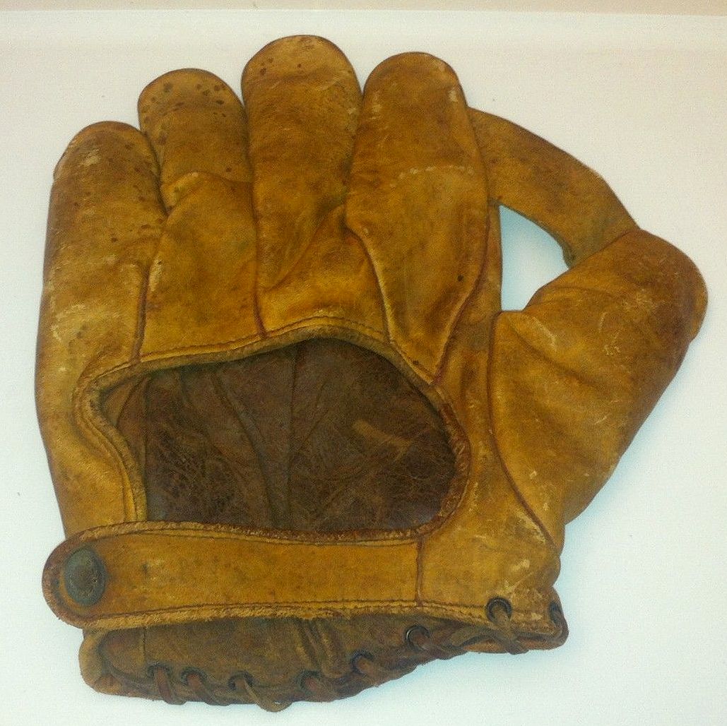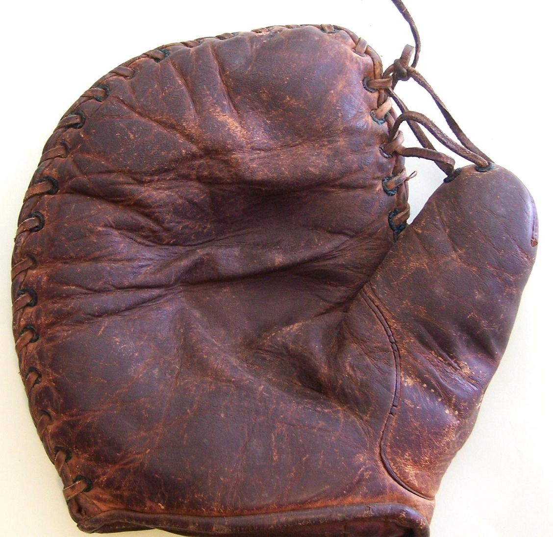 An early '"Decker Patent" Goldsmith catchers mitt sold for $19. The sewn front looks good but the back is very rough. The logo is nice and there looks to be a cloth patch still attached. Despite the tears and missing parts, a pretty good deal.
